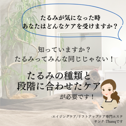 私たちセンター南駅から徒歩5分のエステサロン サンク-Thanq-は、【女性のたるみ】だけに真剣に向き合って9年。